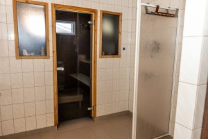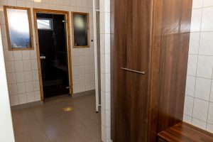 - Sauna:: vastakkain istuttavat lauteet, sähkökiuas