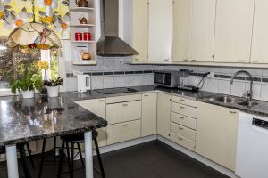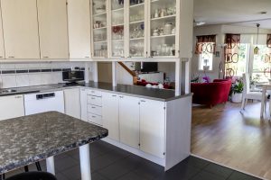 - Materiaalien ja varusteiden kuvaus:: Välitila laatoitettu, kivitaso, Lapinkivi, Black ice)