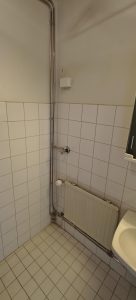 - Materiaalien ja varusteiden kuvaus:: Laattalattia, osalaatoitus seinä