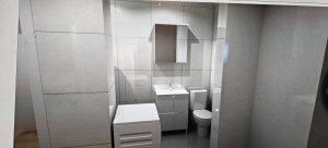 - Materiaalien ja varusteiden kuvaus:: Kaapisto Akasia, kiiltävä valkoinen, valkoiset rungot, tasot laminaatti, tandembox-hidastinmekanismit, alumiiniset jalat kalusteissa, suihkuseinät, taittuva. Pesuallas Minimeri 600, Romeo Led 60 peilikaappi.