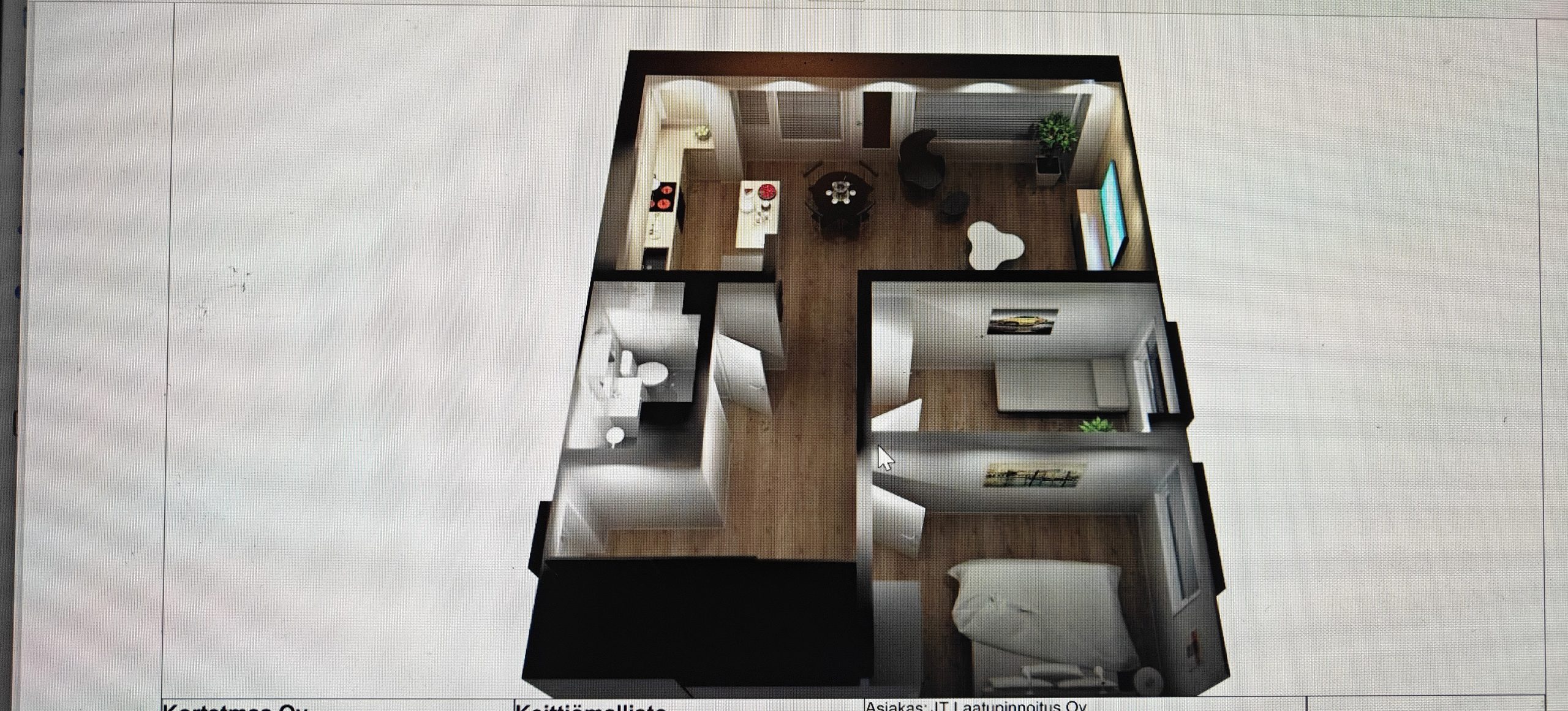 - Keittiö:: uusi keittiö Kortetmaa Oy,n materiaali ja kalustesuunnitelma.
