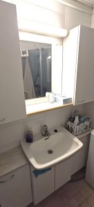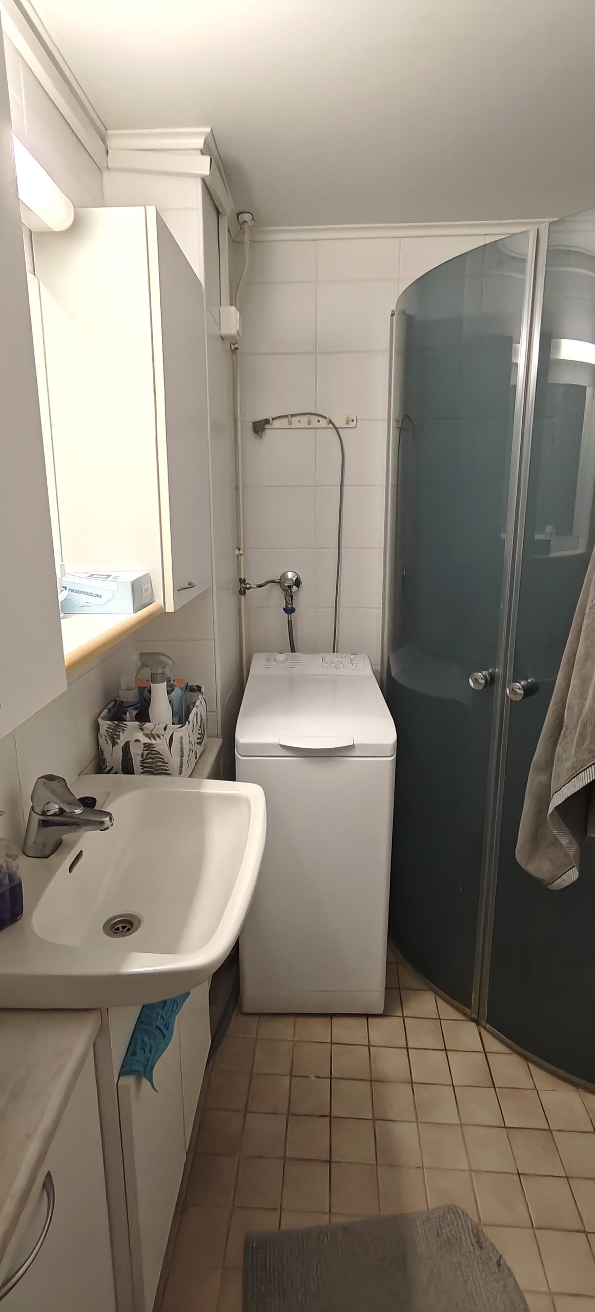 - Tilat ja varustelu:: wc, suihku, kylpyhuonekaapistot, peilikaappi, allaskaappi, pyykkikone.