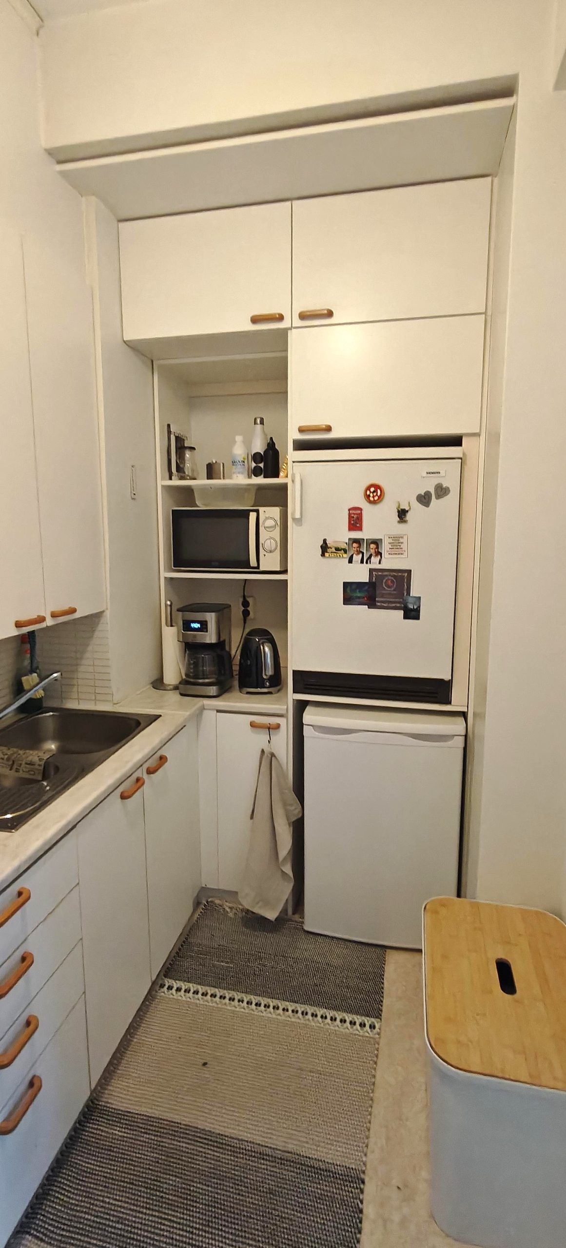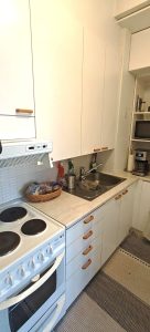 - Tilat ja varustelu:: Tilava makuuhuone ja olohuone, ikkunat Isokadulle. Keittiössä liesi, jk+pk, liesikupu. Kylphuoneessa siirtoseinät, wc-istuin, peilikaappi, pesukoneliitäntä ja pyykkikone.